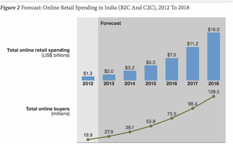 市场研究公司Forrester Research对印度电商规模的预测