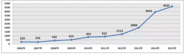 (2006-2015年春节档人次增长示意图(单位:万人))